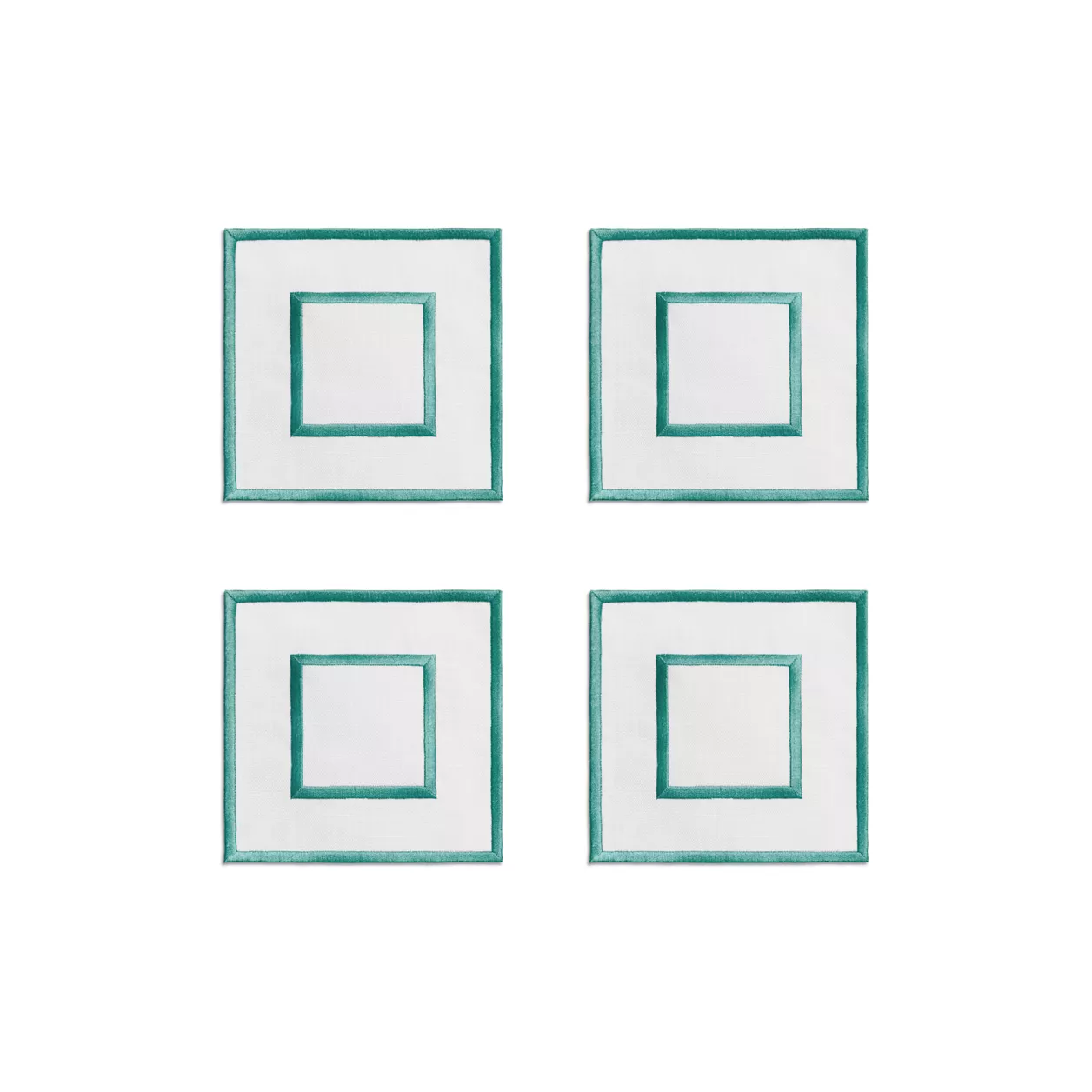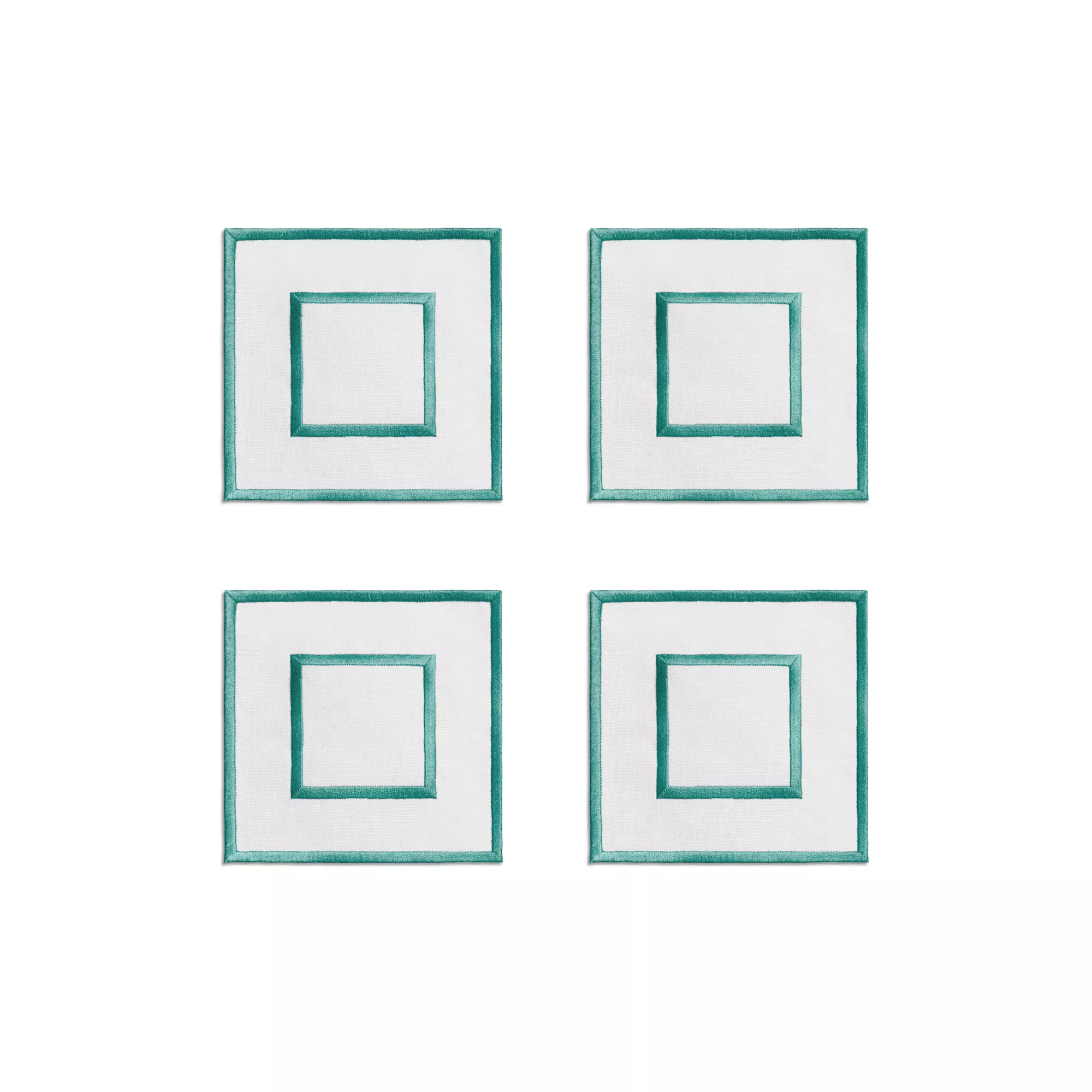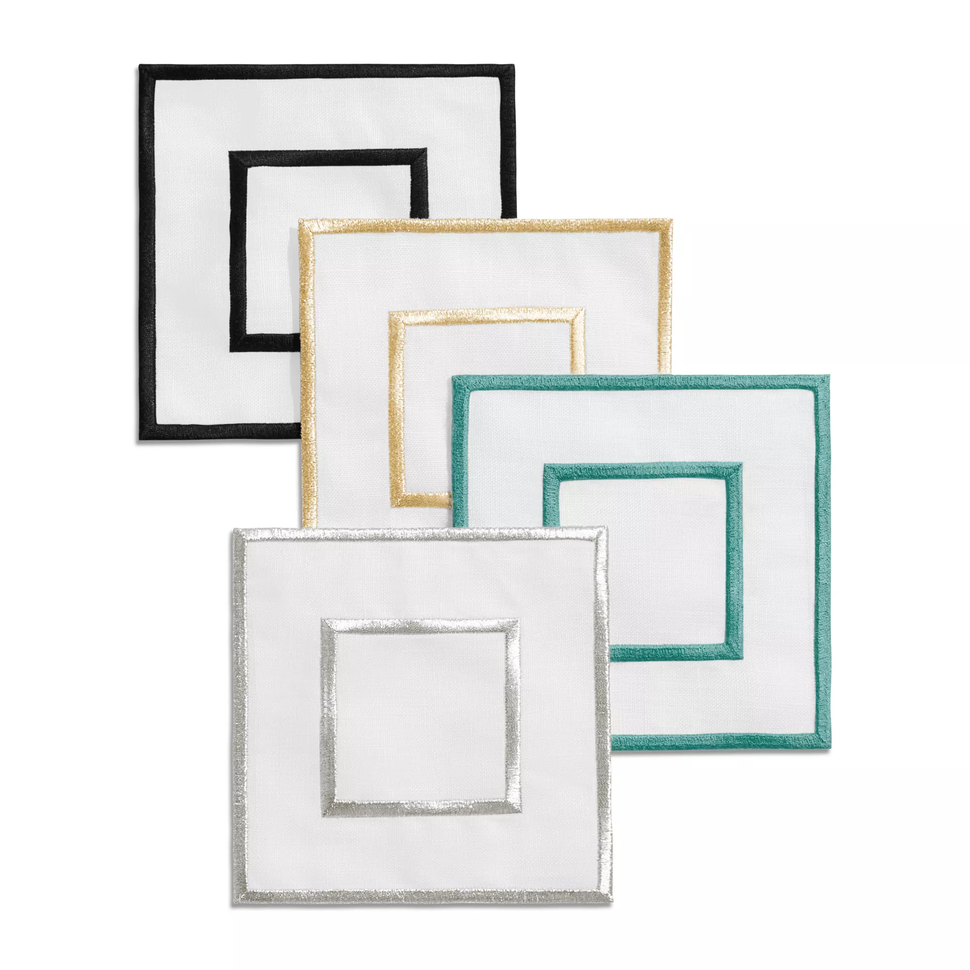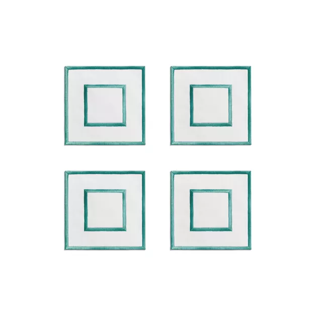 5. Tiffany Home Essentials:Embroidered Coasters in Linen, Set of Four