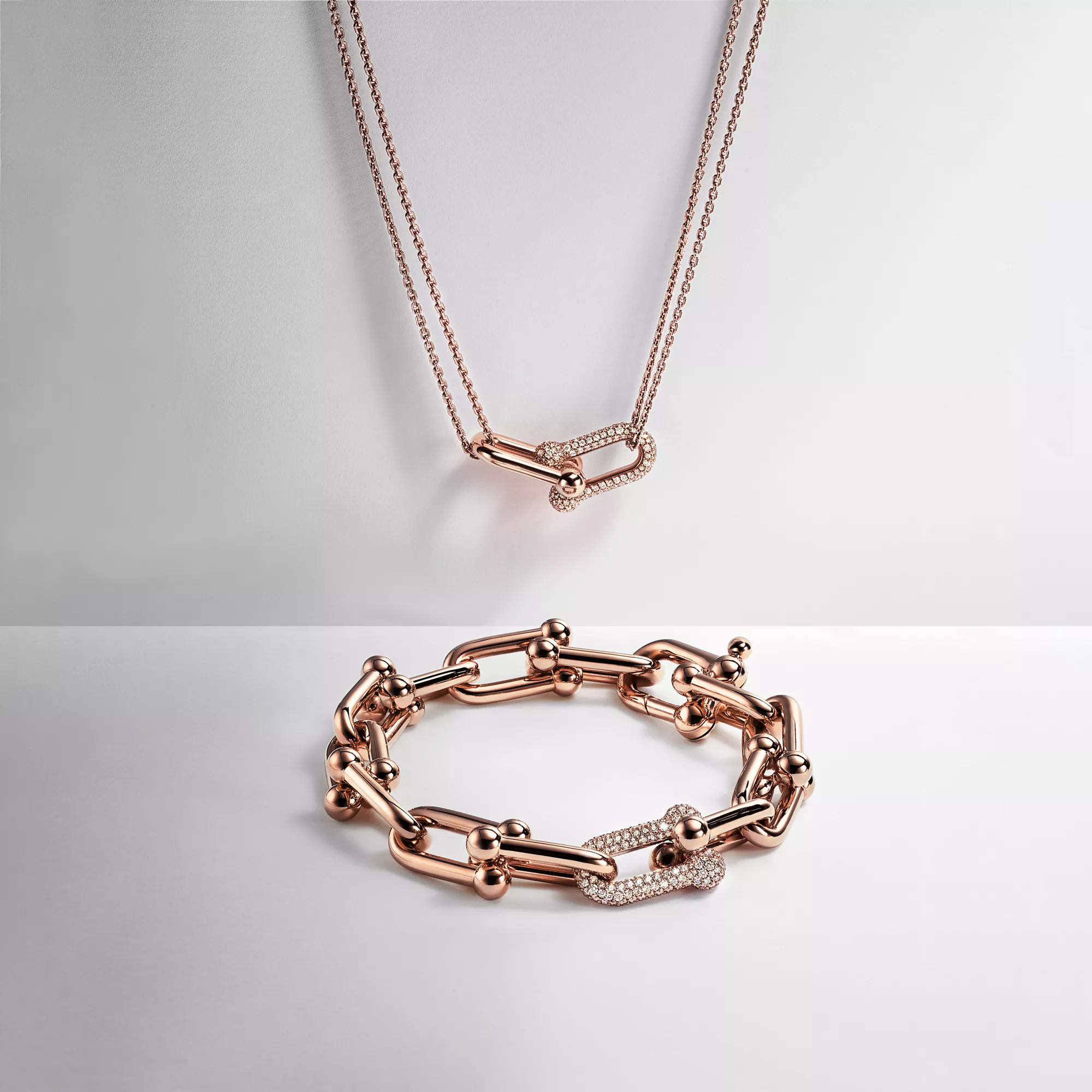 4. Tiffany HardWear:Large Double Link Pendant in Rose Gold with Pavé Diamonds