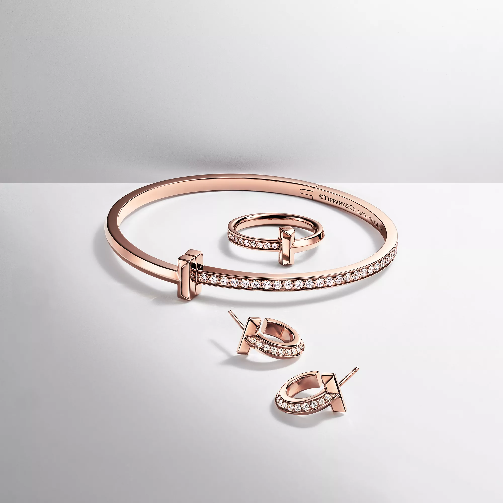 4. Tiffany T:T1 Narrow Diamond Hinged Bangle in Rose Gold